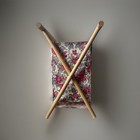 Folding Wood Fabric Knitting Caddy Sewing Basket Collapsible Yarn Vintage Floral