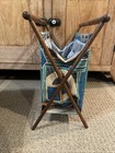20” Tall Vintage Mcm Knitting Sewing Yarn Caddy Basket Folding Wood Frame