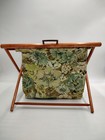 Vtg🔸folding Wood Frame Fabric Sewing Knitting Caddy Basket Mcm Floral Bag