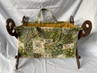 Vintage Knitting Sewing Caddy Basket Yarn Bag Folding Wood Frame Brown Floral