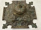Vintage Gilded Bronzed Iron Victorian Ornate Inkwell 13" A 10" D. Art Nouveau