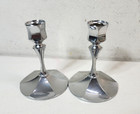 Vintage Silver Metal Irvinware Faceted Taper Candle Stick Holders 4.5" Decor
