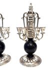 Pair Vintage Silver & Black Wood 6 Arm Candelabra Candle Stick Holder 10.5" *e