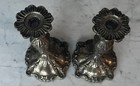 Set Of 2 Vintage Art Nouveau Solid Heavy Brass Silver Candle Stick Holders