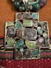 Vintage Silver Tone Turquoise Color Beads Cross Pendant Native American Inspired