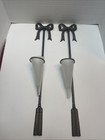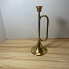 Set Of 3 Vintage Solid Brass Trumpet Horn Candle Holders Candlesticks Silvestri
