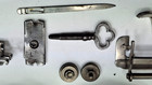 Antique 1899 Singer Folding Wood Puzzle Attachment Box With Assorted Metal Parts