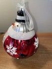 Vintage Glass Snowman Glitter & Snowflakes Christmas Tree Ornament 6"