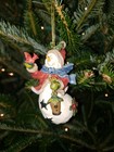 Vintage 1999 Christmas Tumbling Snowman Ornaments Hand Painted Wax Original Pack