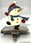 Vintage Snowman Christmas Stocking Hanger Holder Enamel Silver Chrome Base Hook