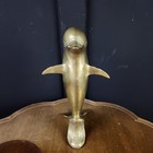 Vintage Solid Brass Dolphin Sculpture Mid Century Modern 11 Inch