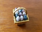 Vintage Solid Perfume Holder/colored Eggs In Gold Basket
