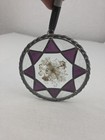 Vintage Handmade Peacock Feather Stained Glass Suncatcher Green Blue Purple