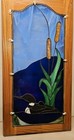 Vtg Large Stained Glass Panel Cattails, Loon - Removeable Wood Frame Beautiful!