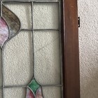 Old English Leaded Stained Glass Window Pretty Floral Design 23.25" X 16"