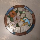 Vtg 12" Round Leaded Stained Glass Window Panel Hummingbird Flower Multicolor