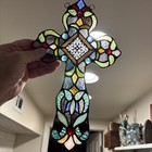 Vintage Handmade Stained Glass Wall Hanging Cross