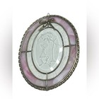 Vintage 10" Oval Stained Glass Sun Catcher Birds Flower Water Pump Multicolor