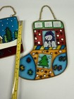 Vintage Stained Glass Suncatcher Lot X3 Christmas Scene Stocking Mixed Lot