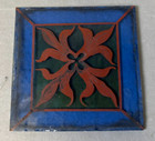 S35 Antique Vtg 3"x3” Square Colorful 1920s Floral Flower Stained Glass Tiles