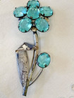Vtg Sterling Silver Flower Brooch Pin Faceted Glass Prong Set Aqua Marine Color