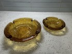 Vintage Gold Amber Mcm Style Heavy Round Textured Glass Ashtray W/ 4 Slot 1970's