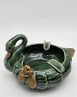 Vintage Green Swan Ashtray Gold Rose Flower Jade Green Art Decor Porcelain 60's
