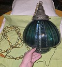 Vintage Green Glass Hanging Light Swag Lamp Diffuser Retro Antique