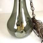 Hanging Teardrop Mcm Swag Lamp Light Green Glass Brass Wood Band 22”h Works!