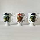 (3) Vintage Japanese White Pedestal Coffee Tea Mugs Cup With Flower Cart 1970’s