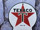 Vintage Texaco Gasoline Porcelain Enamel Gas Oil Sign 12”