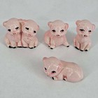 Vintage Set Of 4 Tiny Hand Painted Miniature Porcelain Pink Piglets 0.75-1.25"