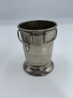 Vtg Brass Plated Collapsible Travel Cup 1930’s Silver Tone Metal Folding Handle