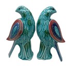 Vintage Colorful Tropical Birds Ceramic Salt & Pepper Shakers Blue Orange