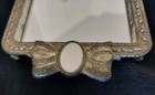 Vintage “brass” Gold Filigree Vanity Mirror Tray Stand Floral Rectangle Perfume