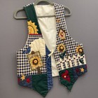 Vintage 90s Fall Patchwork Print Tailored Vest Men Medium Folk Art Indie Retro