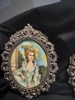 Vtg Double Mini Picture Frame Photo Ornate Angels Victorian Metal Oval Lavoie