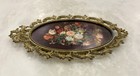 Victorian Ornate Metal Oval Picture Frame Glass Floral Made In Italy Vintage