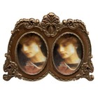 Vtg Victorian Ornate Metal Double Oval Picture Frame Gold Tone Standing 5.5x5.25