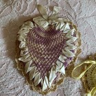 Vintage Victorian Heart Pin Cushions Ribbon Crochet Lace Sewing Cushions Lg & Sm