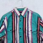 Wrangler Shirt Men's Vtg Large Green Button Vertical Striped Rodeo Cowboy