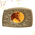 Vintage Horse Head Belt Buckle Engraved Western Style Silver Tone 1970s Quarter