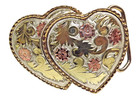 Vtg Double Hearts Belt Buckle Usa Made Western Engraved Floral Gold Silver Tone