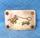 Cowboy Calf Roper Belt Buckle Gem Mounts Western Floral Scroll Vtg .gmp581
