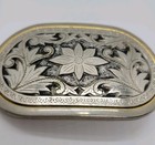 Western Belt Buckle Etched Flower Silver Gold Tone Oval 3” Cowgirl Vtg Free Ship