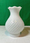 Vintage White Hobnail Milk Glass Hurricane Lamp Shade Globe Ruffled Top 8”