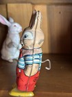 Vintage J. Chein Easter Bunny Smiling Wind Up Tin Toy Workshop