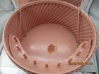 Vintage 1940s Princess Pink Wicker & Wood Round Sewing Basket Box Nice Condition