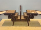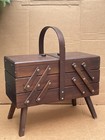 Wood Sewing Box Accordion 3 Tier Fold Out Chest Mid Century Modern Vintage