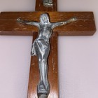 Vintage Wooden Metal Wall Cross Crucifix Holy Religious Carved Christ Natural